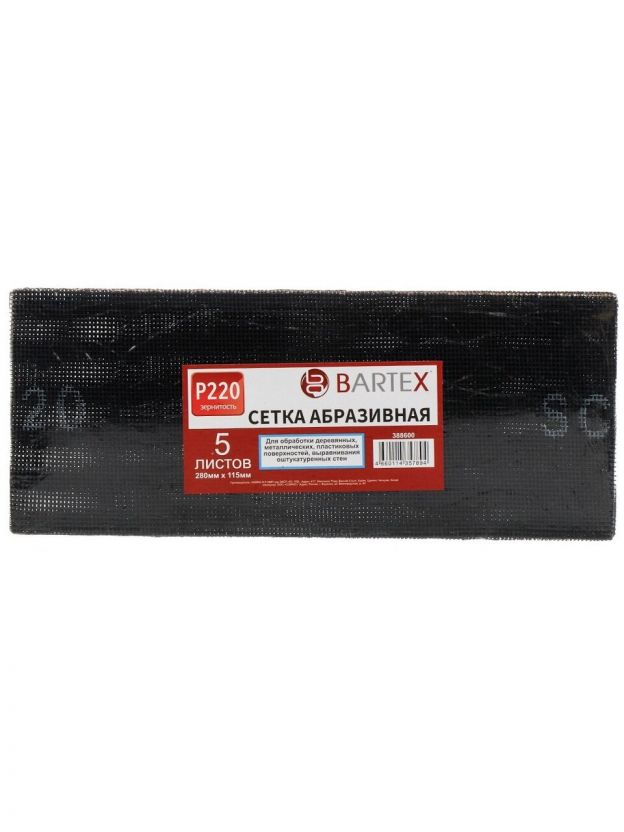 Сетка абразивная зернистость P220, 115х280 мм, 5 шт, Bartex, AI-2904017