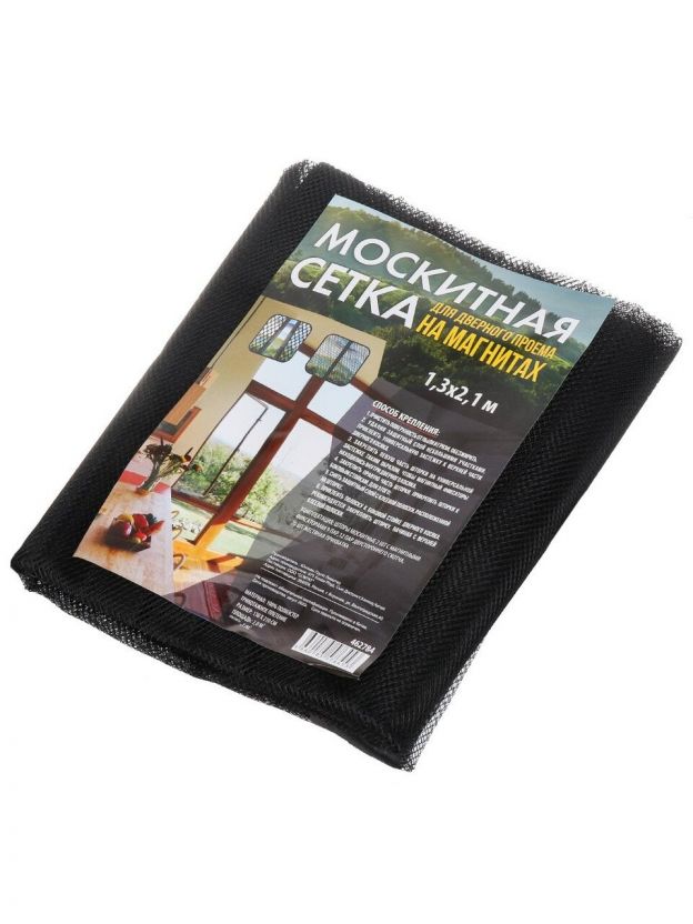 Сетка москитная для двери, 1.3х2.1 м, на магнитах, черная, на проем, 462784, пакет