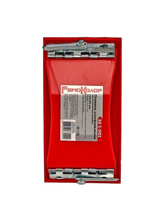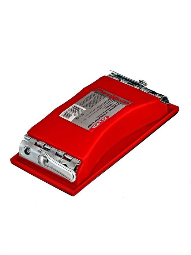 Шлифовальная оправка, 165x85 мм необходима для установки шлифовального полотна. Оснащена металлическими зажимами, корпус изготовлен из пластика. Платформа имеет резиновое покрытие, которое позволяет избежать скольжения полотна.