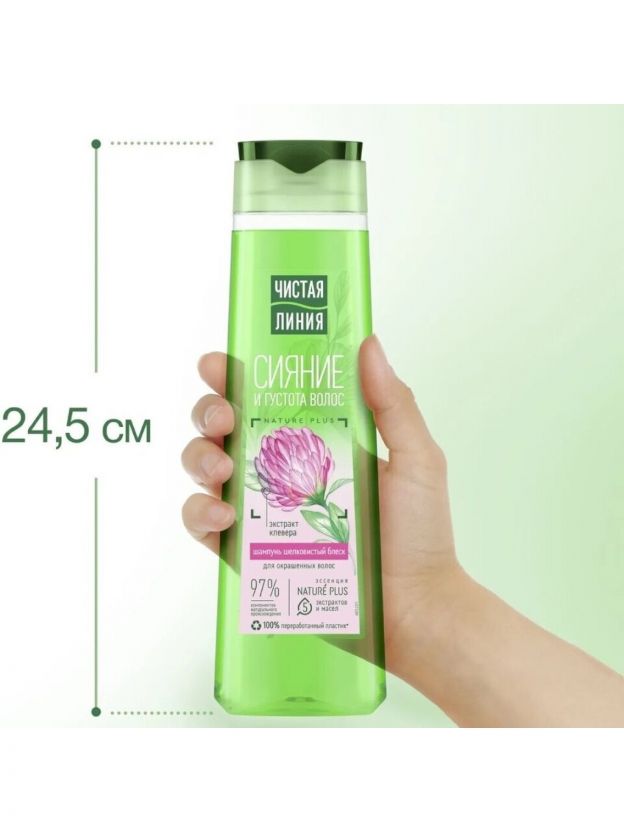 Шампунь Чистая линия, Шелк и блеск Клевер, для окрашенных волос, 400 мл