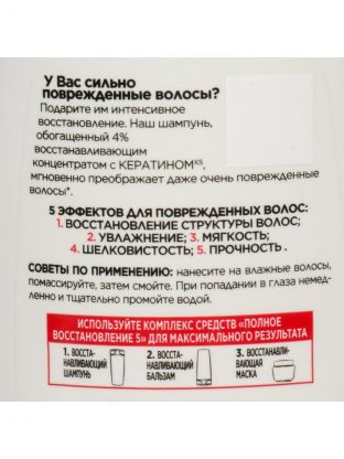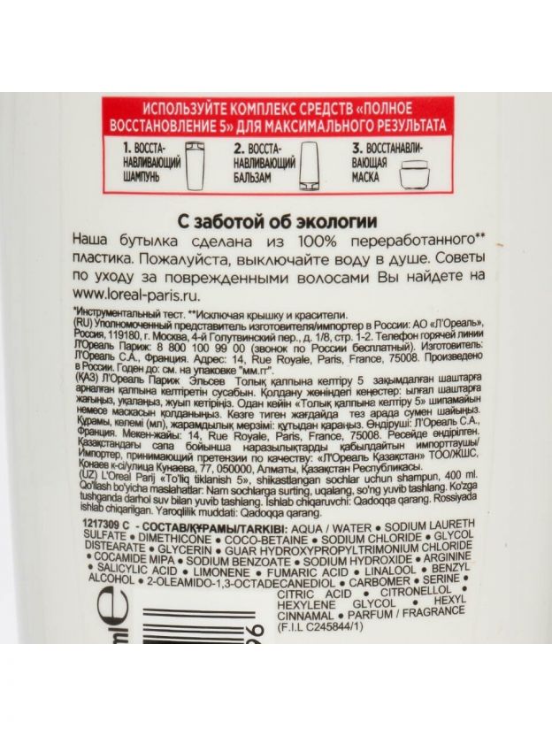 Шампунь L'Oreal Paris, Elseve, Полное Восстановление 5, 400 мл