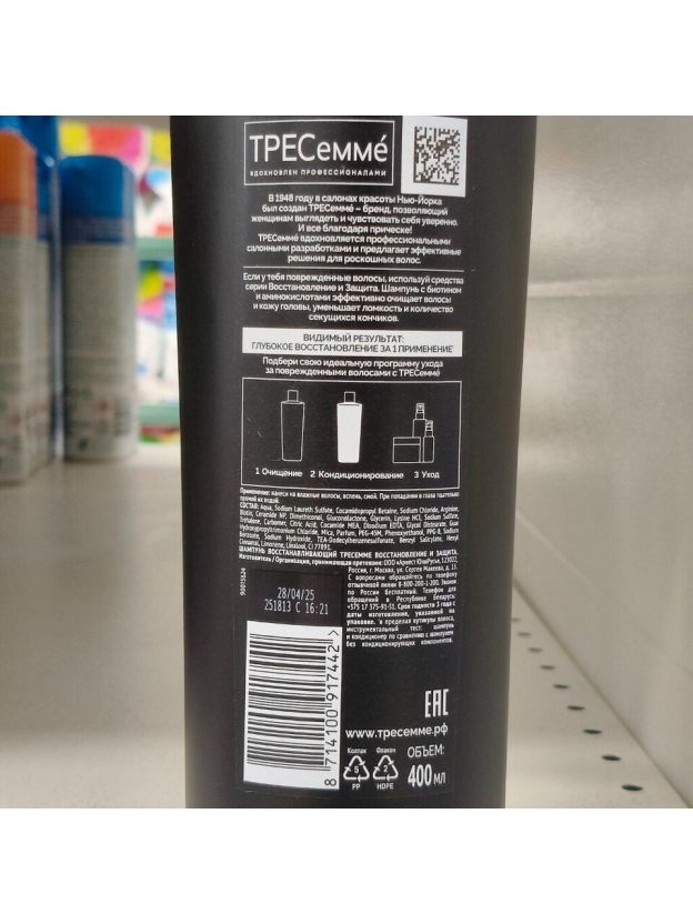 Шампунь TRESemme, Repair and Protect с биотином, для сухих и поврежденных волос, 400 мл