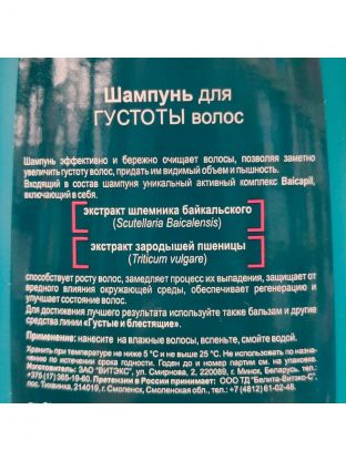 Входящий в состав шампуня уникальный активный комплекс Baicapil (включающий в себя экстракт шлемника байкальского и экстракт зародышей пшеницы), способствует росту волос, замедляет процесс их выпадения, защищает от вредного влияния окружающей среды, обеспечивает регенерацию и улучшает состояние волос.