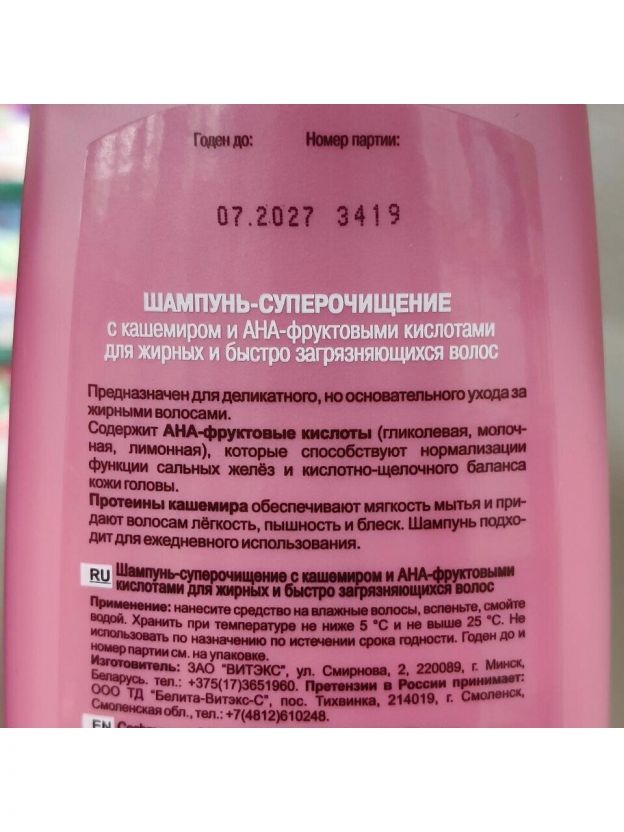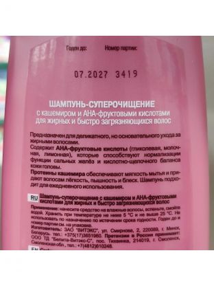 Нежный шампунь с мягким моющим составом, содержит лечебные протеины кашемира и непревзойденный витамин восстановитель структуры волос — биотин;