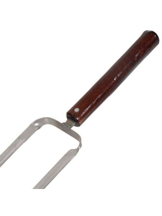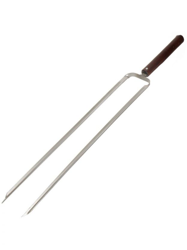 Двойной шампур с деревянной ручкой облегчит вам приготовление деликатесов на углях. Удобен для приготовления больших кусков мяса или целой курицы. Данная модель обеспечивает двойную фиксацию нанизанных кусочков. Комфортная деревянная ручка из бука покрыта несколькими слоями лака. Она удобно лежит в руке, не скользит и не нагревается. Сам шампур выполнен из нержавеющей стали высокого качества.