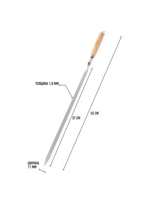 Шампур лезвие плоское, 6 шт, 550х11х1.8 мм, нержавеющая сталь, рукоятка дерево, Forester, Pro, RZ-550SBPro