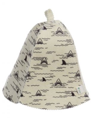 Шапка для бани 50% шерсть, 50% п/э, Банные штучки, Акулы — комфортная защита головы в парилке для всей семьи. Сохраняет здоровье волос и кожи, долговечна, оригинальный дизайн.