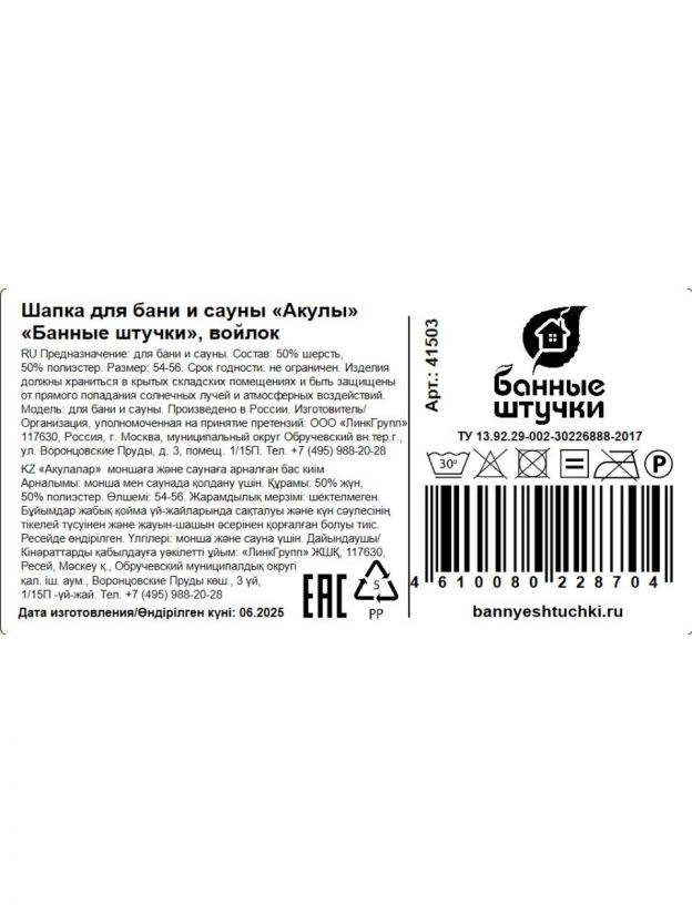 Шапка для бани «Банные штучки, Акулы» сочетает в себе современные тренды и проверенные материалы. Благодаря комбинации шерсти и полиэстера, изделие эффективно защищает голову от перегрева и сохраняет комфорт даже при длительном посещении парной. Такой состав облегчает стирку и ускоряет высыхание, что важно для регулярного использования. Если вы ищете, какую шапку для бани купить недорого для дачи или сауны, обратите внимание на этот вариант.