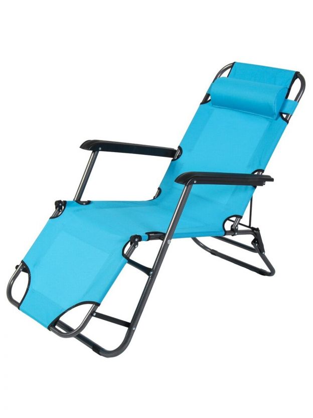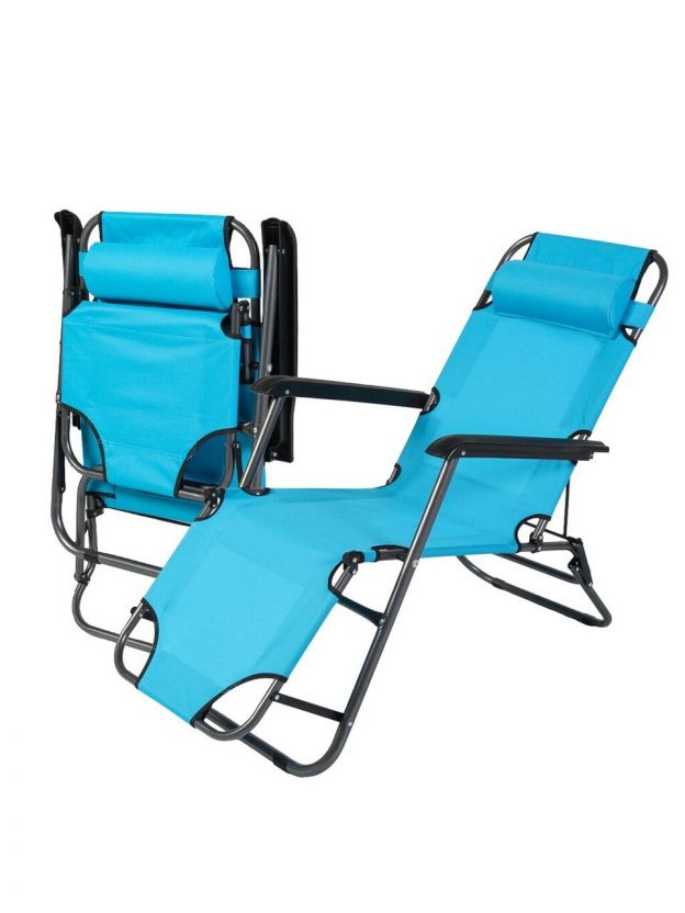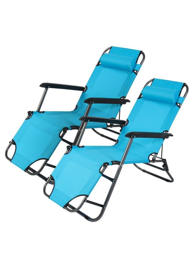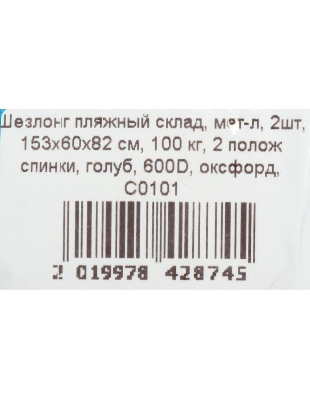 Шезлонг пляжный складной, металл, 153х60х82 см, 100 кг, 2 положения спинки, голубой, 2 шт, 600D, оксфорд, C0101