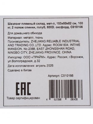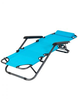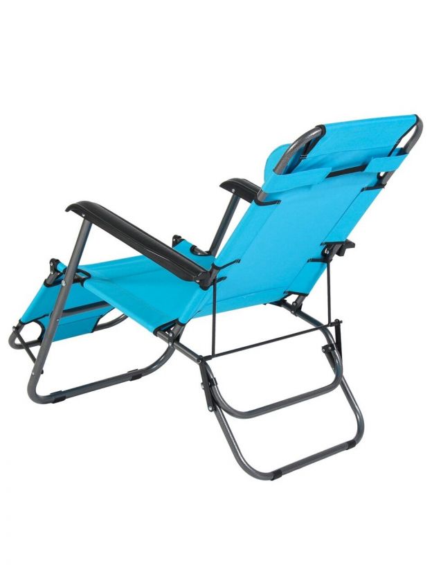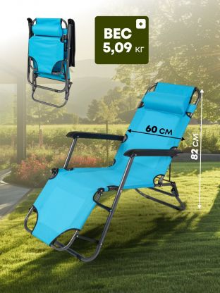 Шезлонг пляжный складной, металл, 153х60х82 см, 100 кг, 2 положения спинки, голубой, 600D, оксфорд, C010166