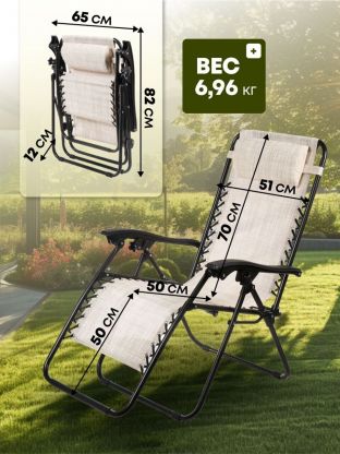 Шезлонг можно легко разместить в багажнике любого автомобиля и взять с собой куда угодно. Это делает шезлонг идеальным выбором для любителей активного отдыха, которые часто путешествуют или проводят время на природе. Благодаря компактным размерам шезлонг не занимает много места и его удобно хранить даже в небольшой квартире.