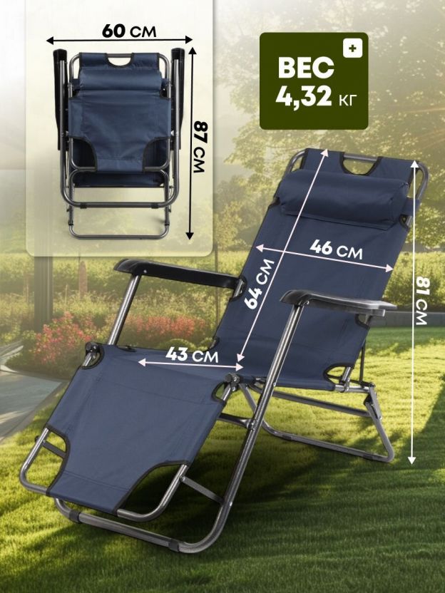 - Регулируемые по высоте подлокотники и съёмный подголовник гарантируют удобство и приятные ощущения во время отдыха.