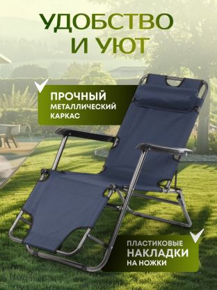 Шезлонг складной, металл, 153х59х81 см, 100 кг, синий, Ecos, CHO-153, 993136