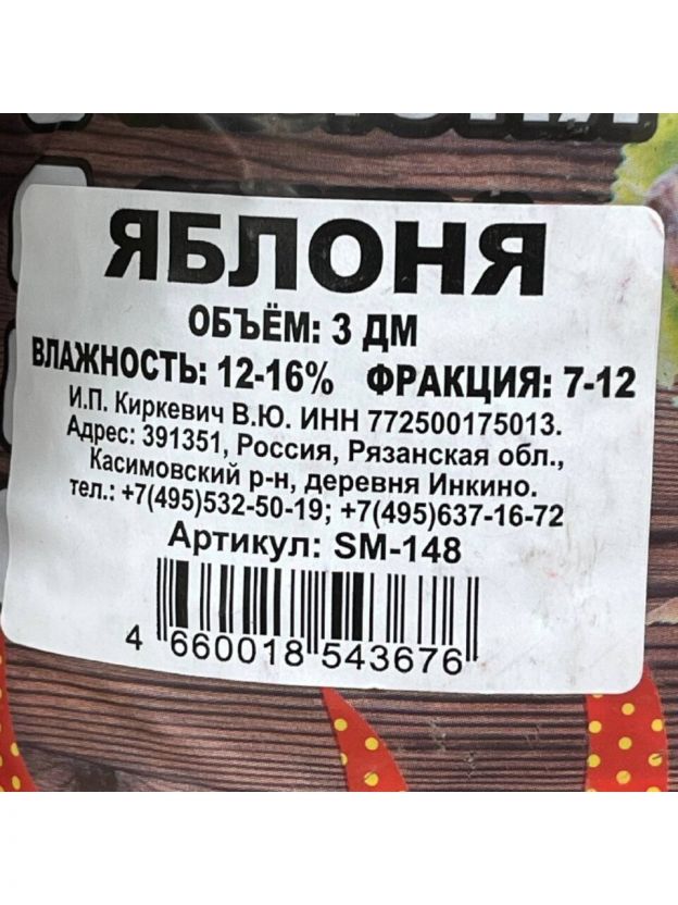 На особом положении среди измельченной и обработанной древесины находится сырье, полученное из фруктовых деревьев. Как и любая другая фруктовая щепа для копчения, дробленая и рубленая яблоня отличается высоким содержанием ароматических смол и сахара. Поэтому эффект ее дыма более выраженный, чем древесины других пород, за исключением хвойных. Но, в отличие от хвойных пород, яблоневые щепки не придают копченостям неприятный привкус и запах.