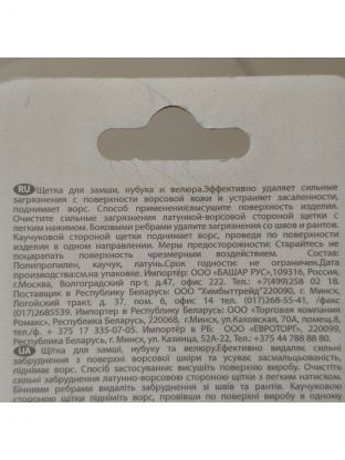 Щетка для нубука и замши 4-сторонняя. Каучуковая поверхность щётки мягко восстанавливает поверхность деликатных материалов. Ворс в сочетании с латунной щетиной очищают от сухих и липких загрязнений. Боковые рёбра обеспечивают безопасное удаление загрязнений со швов и рантов, защищая от потёртостей.