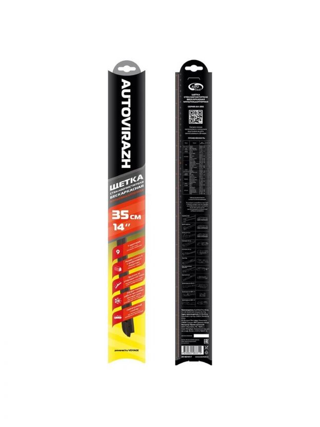 Щетка стеклоочистителя Autovirazh, AV-255, бескаркасная, мультиадаптер, 14"/35 см, AV-001417