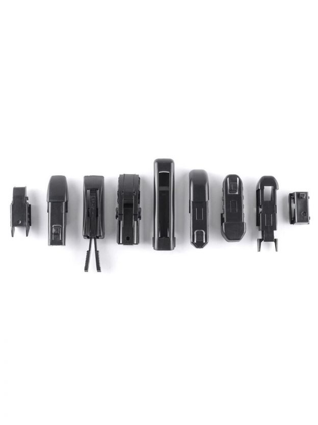 Пружина из углеродистой стали отличается высокой прижимной силой. На адаптеры нанесено антикоррозийное покрытие. Спойлер щетки имеет симметричную форму, подходит для леворульных и праворульных автомобилей.