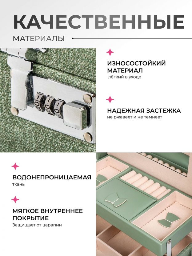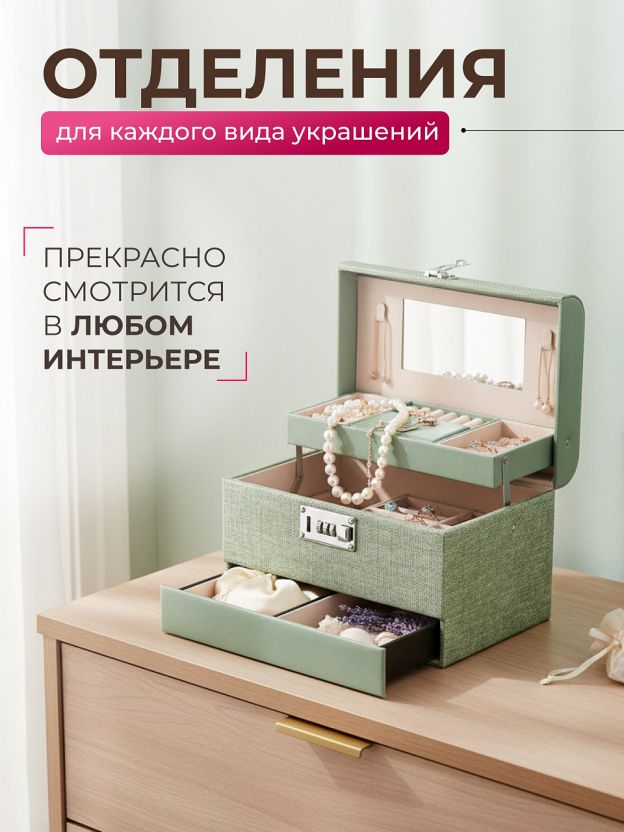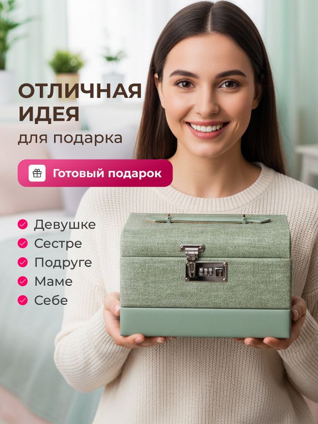 • Шкатулка соберет все украшения в одном место и организует удобное хранение;