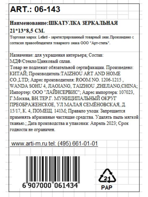 Зеркальная декоративная шкатулка Lefard 21х13х8.5 см — стильное решение для хранения украшений и мелочей, идеальный подарок для дома и дачи.