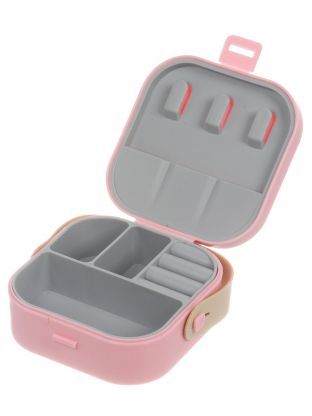 Корпус выполнен из прочного пластика, внутренний вкладыш — из мягкого силикона для защиты украшений от царапин и повреждений.
