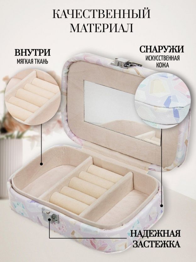 Великолепная шкатулка для украшений не оставит равнодушной ни одну любительницу изысканных вещей. Сочетание оригинального дизайна и функциональности сделает такую шкатулку практичным, стильным подарком и предметом гордости ее обладательницы.