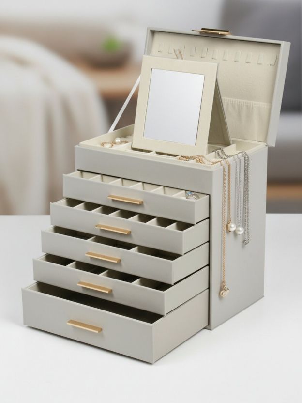 Закажите шкатулку для украшений с выгодной доставкой — оцените удобство, современный дизайн и надёжность хранения ваших аксессуаров.