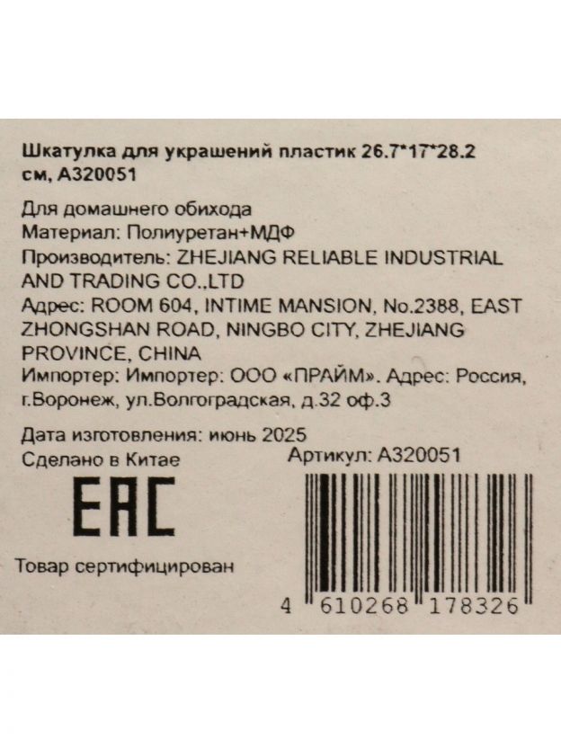 Шкатулка для украшений из пластика — это современное решение для аккуратного хранения колец, серёг, цепочек и бижутерии. Благодаря компактным размерам и продуманной прямоугольной форме, вы легко разместите её на туалетном столике, в шкафу или заберёте с собой на дачу. Покупатели часто спрашивают: «Как выбрать шкатулку для украшений?» — обратите внимание на материалы и внутреннюю организацию. Здесь используются пластик, полиуретан и МДФ, что обеспечивает устойчивость к влаге и механическим повреждениям.
