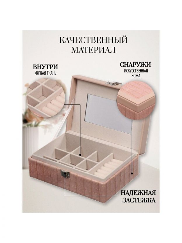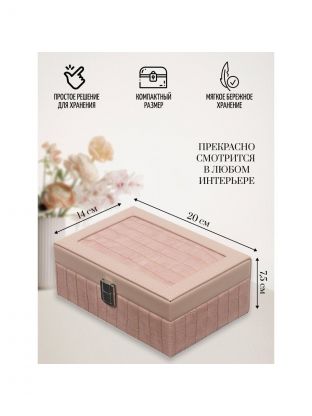 Шкатулка для украшений, полимер, 20х14х7.5 см, розовая, Y4-5317