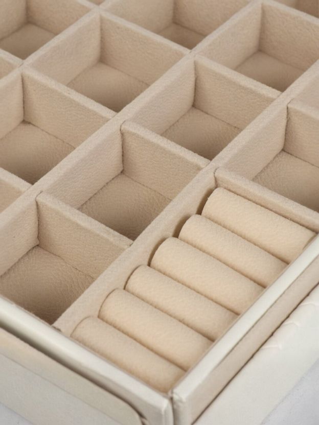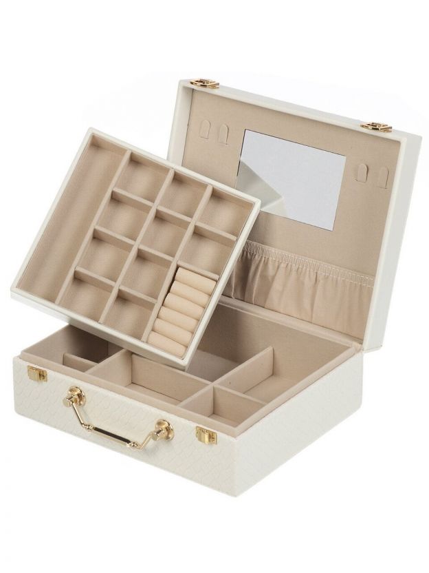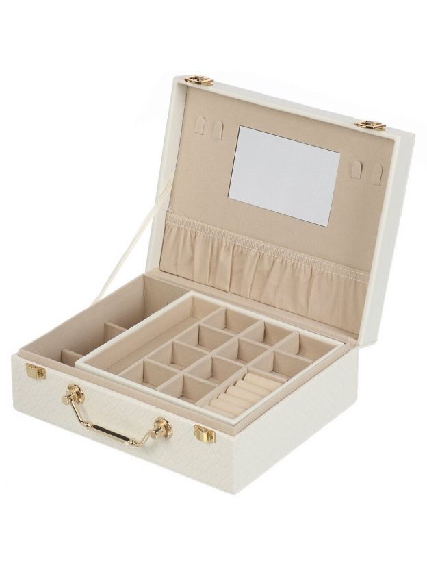 • Внутри шкатулки предусмотрены различные отделения и секции, что позволяет удобно организовать хранение украшений, предотвращая их запутывание и потерю.