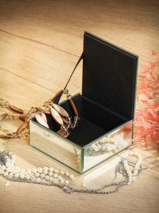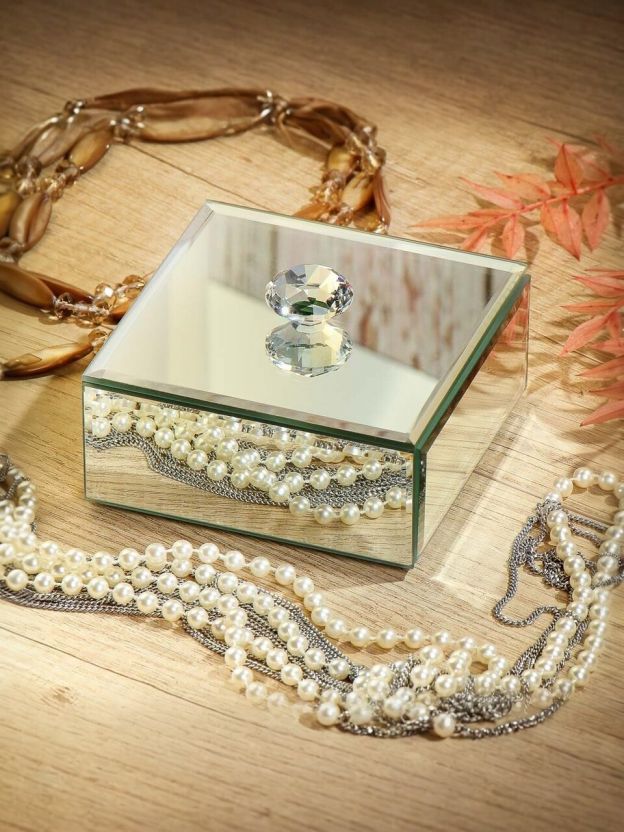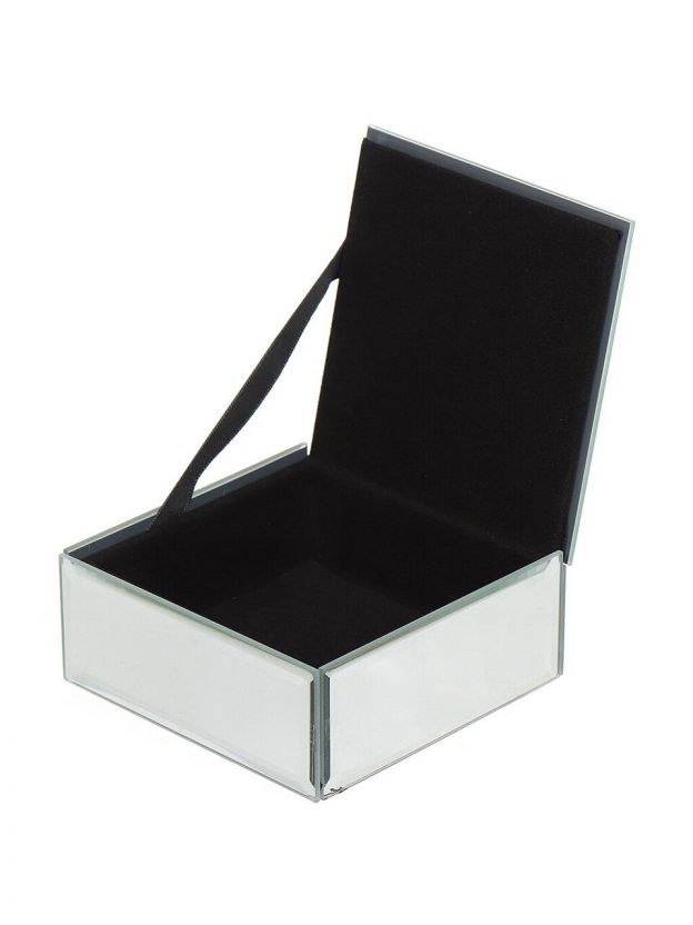 Стеклянная шкатулка с зеркалом выглядит более презентабельно, устойчива к царапинам и легче очищается, что делает её отличным подарком для любого случая.