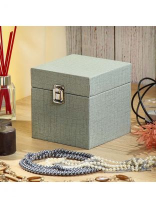 Шкатулка-сундук для украшений и косметики, искусственная кожа, 15х15х15 см, серая, Y4-5152/Y4-5153