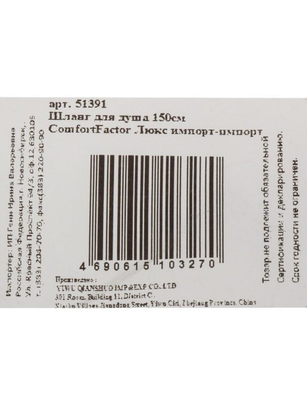 Как выбрать шланг для душа? Обращайте внимание на тип подключения: у данной модели стандарт ИМП-ИМП (универсальная резьба), что подходит для большинства смесителей и лейк. Хромированное покрытие сохраняет внешний вид и легко очищается. Если вы ищете, какой шланг лучше для дачи или городской квартиры — ComfortFactor Люкс оптимален по цене и качеству.