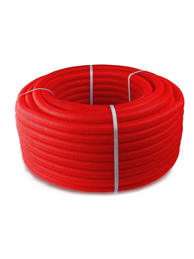 Гофра для прокладки труб защищает систему отопления от воздействия внешней среды. Представляет собой кожух из полиэтилена высокого давления (ПЭВД), подходит для труб из металлопластика. Допускается заливка гофры бетоном или цементной стяжкой, монтирование в кирпичные стены.