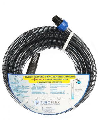 Шланг напорно-всасывающий, ПВХ, диаметр 25 мм, с обратным клапаном, в ассортименте, Tuboflex, 11 м