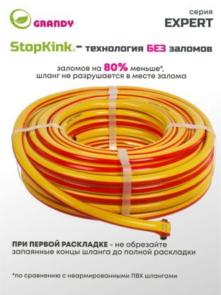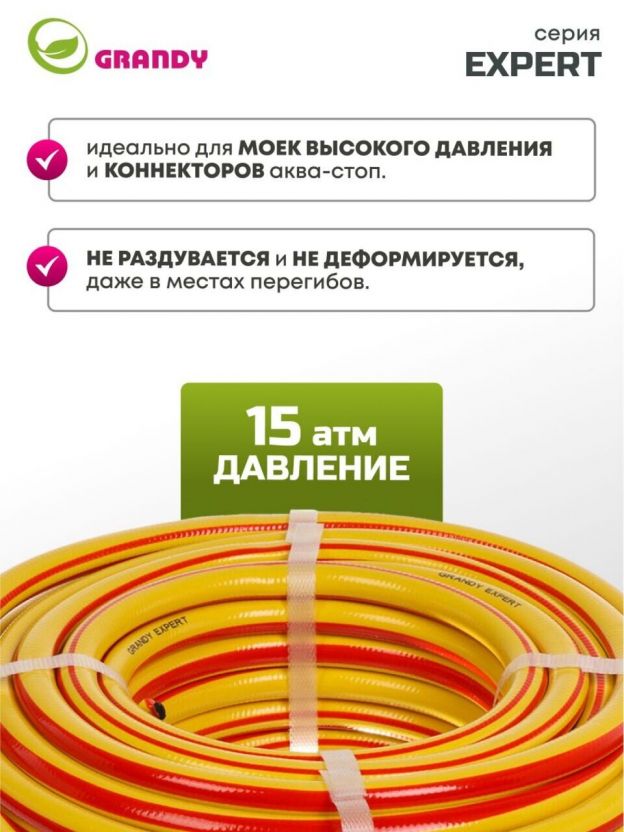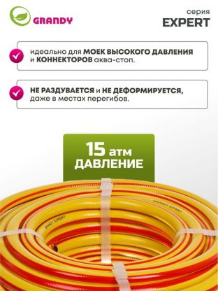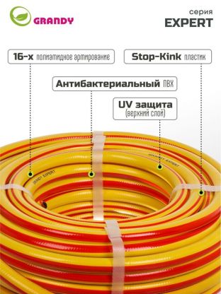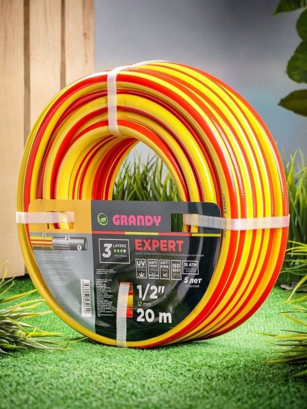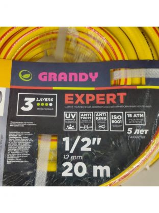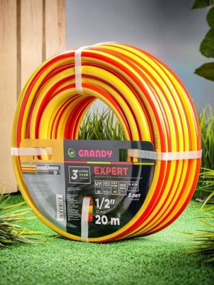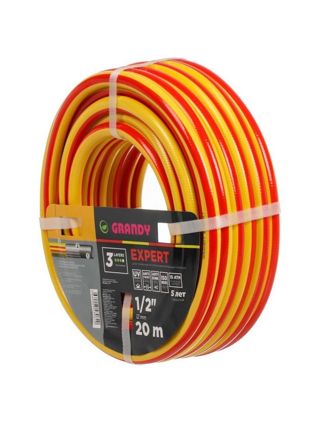Шланг поливочный, 1/2 '', 12 мм, 15 атм, армированный, 20 м, 3 слоя, Grandy, Expert, ПВХ, антиторсионный