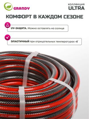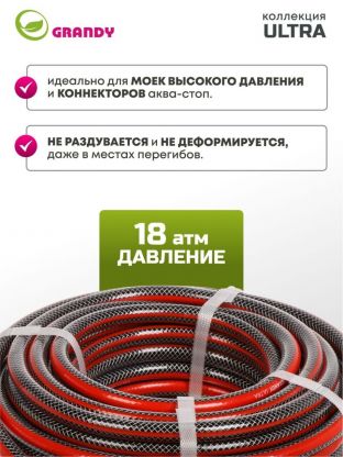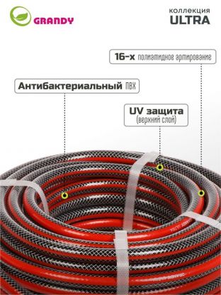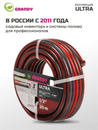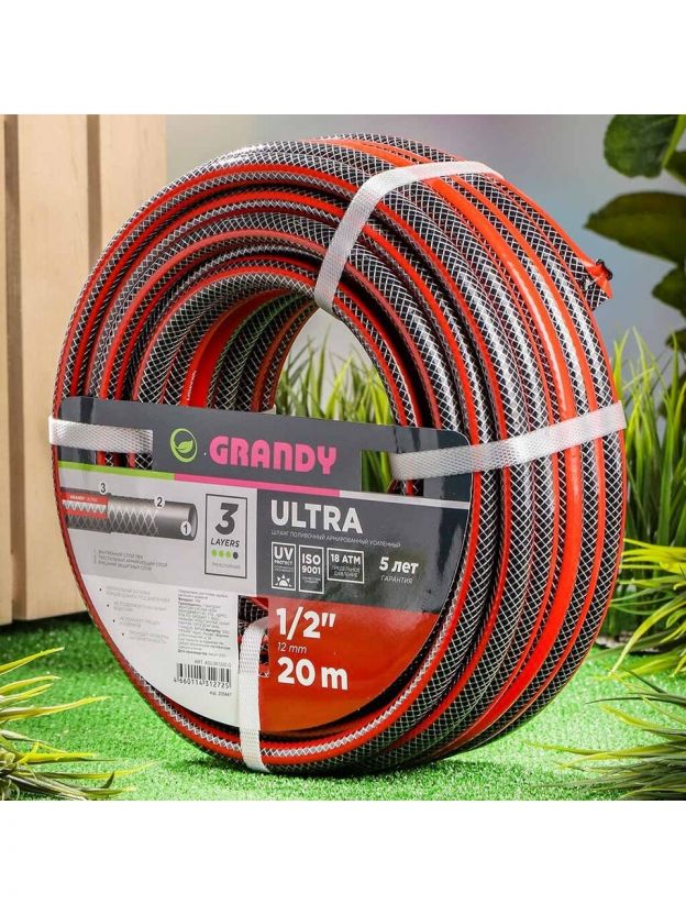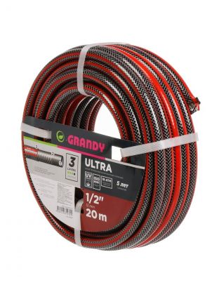 Шланг поливочный, 1/2 '', 12 мм, 18 атм, армированный, 20 м, 3 слоя, Grandy, Ultra, ПВХ
