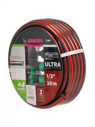 Шланг поливочный, 1/2 '', 12 мм, 18 атм, армированный, 20 м, 3 слоя, Grandy, Ultra+, ПВХ, с фитингами