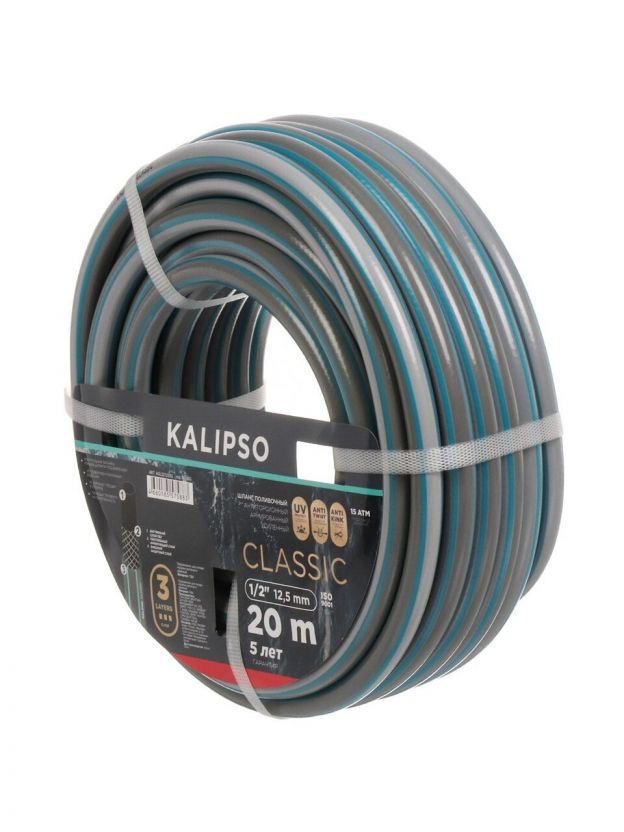 Шланг поливочный, 1/2 '', внутренний d12.5 мм, 15 атм, армированный, 20 м, 3 слоя, Kalipso, Classic, ПВХ, AGL221220G
