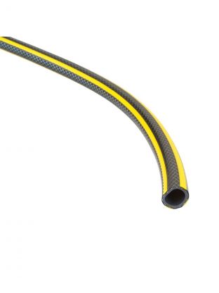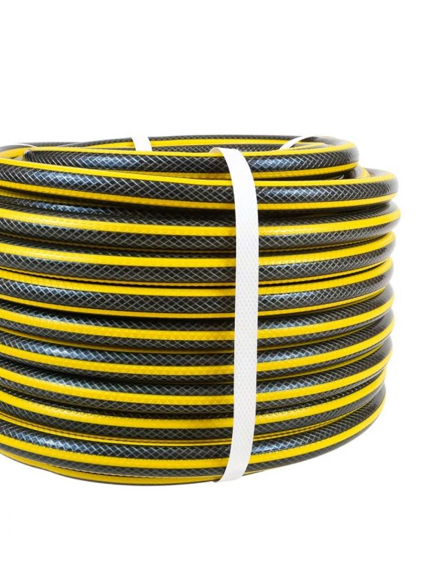 Три слоя ПВХ защищают от разрывов и перегибов, снижают износ при перемещении по участку, шланг остаётся эластичным и не трескается на солнце.