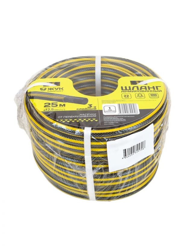Поливочный шланг Жук Comfort 1/2", 25 м, 3 слоя — надёжное решение для дачи и сада: выдерживает давление до 22 атм, не перегибается, служит долго.