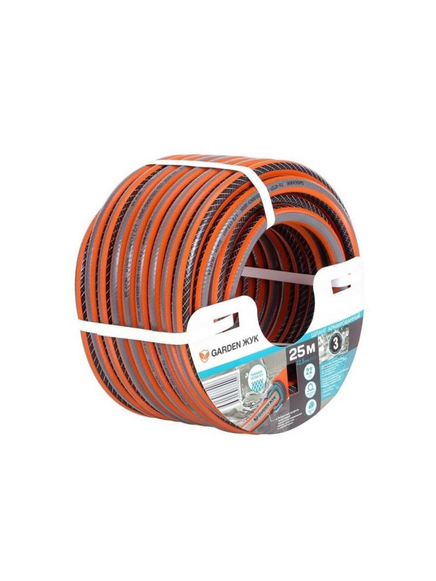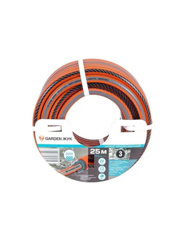 Шланг поливочный, 1/2 '', внутренний d12.5 мм, 22 атм, армированный, 25 м, 3 слоя, Жук, Garden, ПВХ, 8906-00