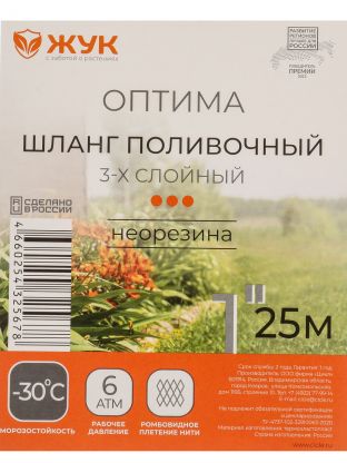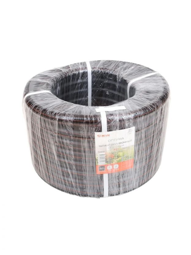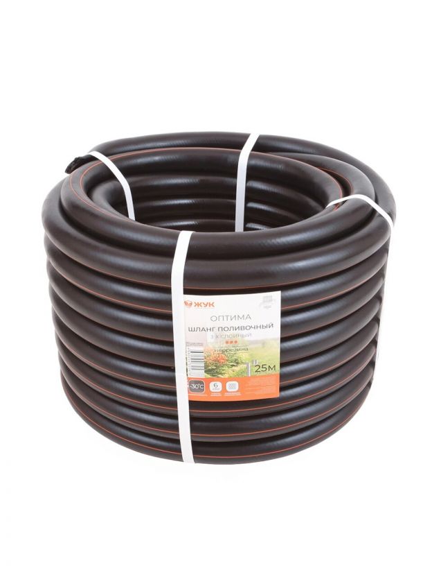 Шланг поливочный, 1 '', внутренний d25 мм, 6 атм, армированный, 25 м, 3 слоя, Жук, Оптима, черный, 325678-00