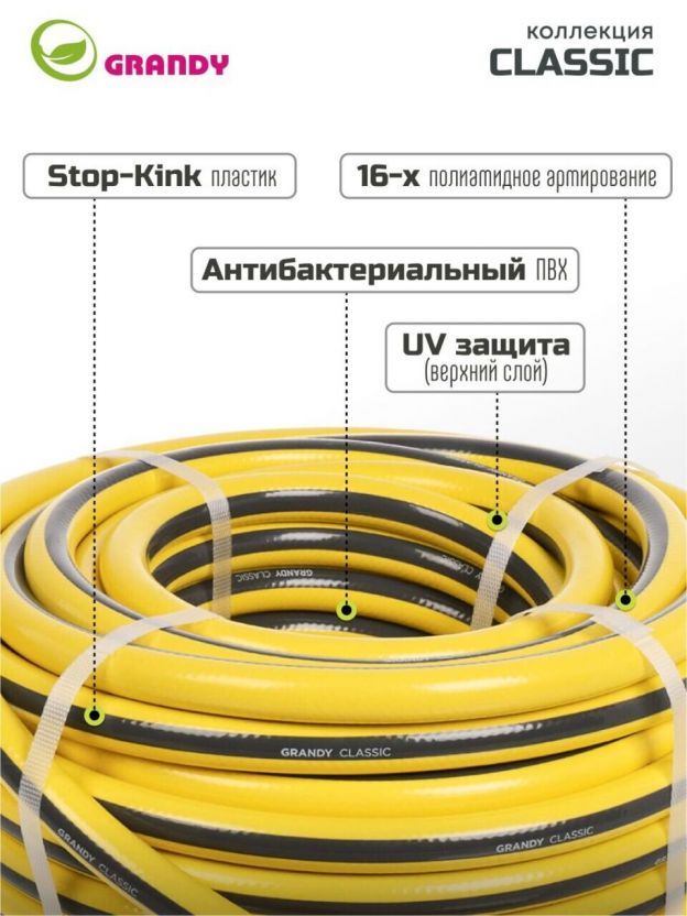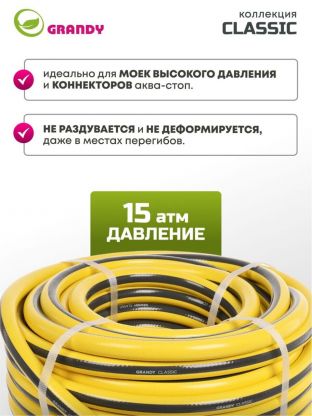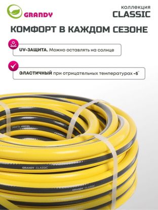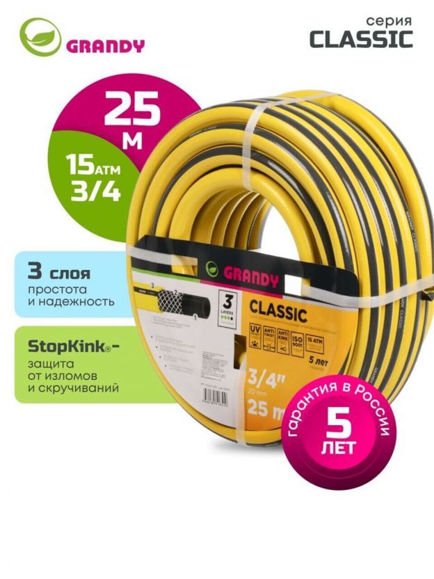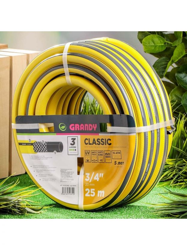 Шланг поливочный, 3/4 '', 20 мм, армированный, 25 м, 3 слоя, Grandy, Classic, ПВХ, AGL2213425