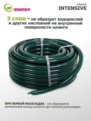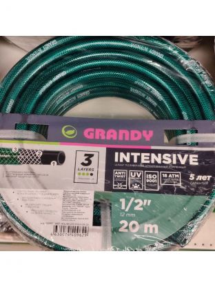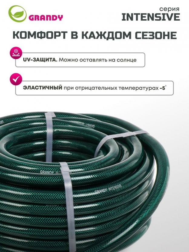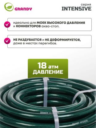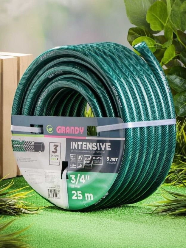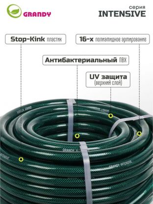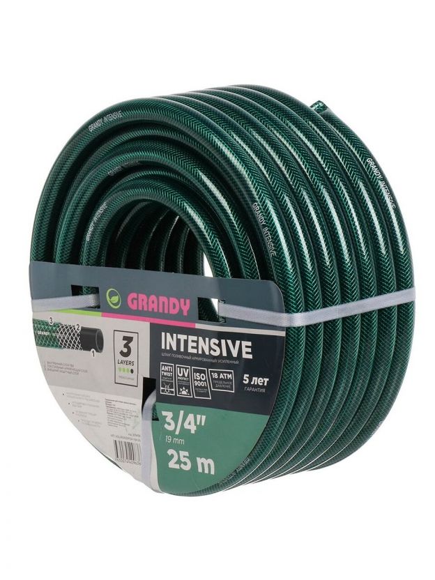Шланг поливочный, 3/4 '', внутренний d19 мм, 18 атм, армированный, 25 м, 3 слоя, Grandy, Intensive, ПВХ, усиленный, d23 - внешний диаметр, AGL063425/PGH-19A-25