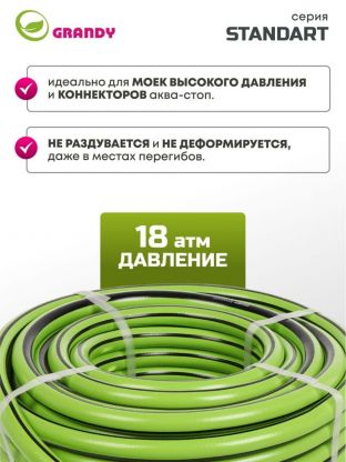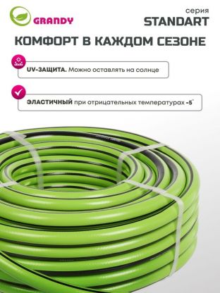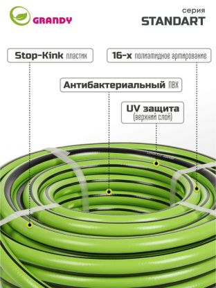 Шланг Grandy обладает всеми необходимыми характеристиками: очень прочный, гибкий и устойчивый к скручиванию, что делает его идеальным для использования в любых условиях. Материал, из которого изготовлен шланг, прекрасно справляется с воздействием солнечных лучей, благодаря чему шланг не выгорает и не портится со временем.
