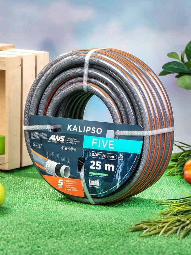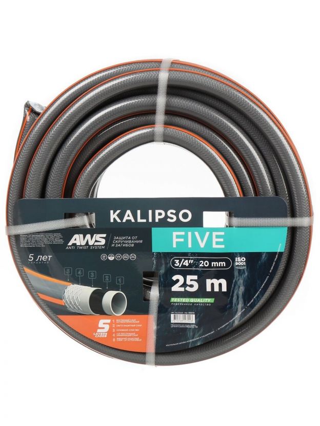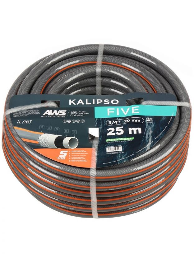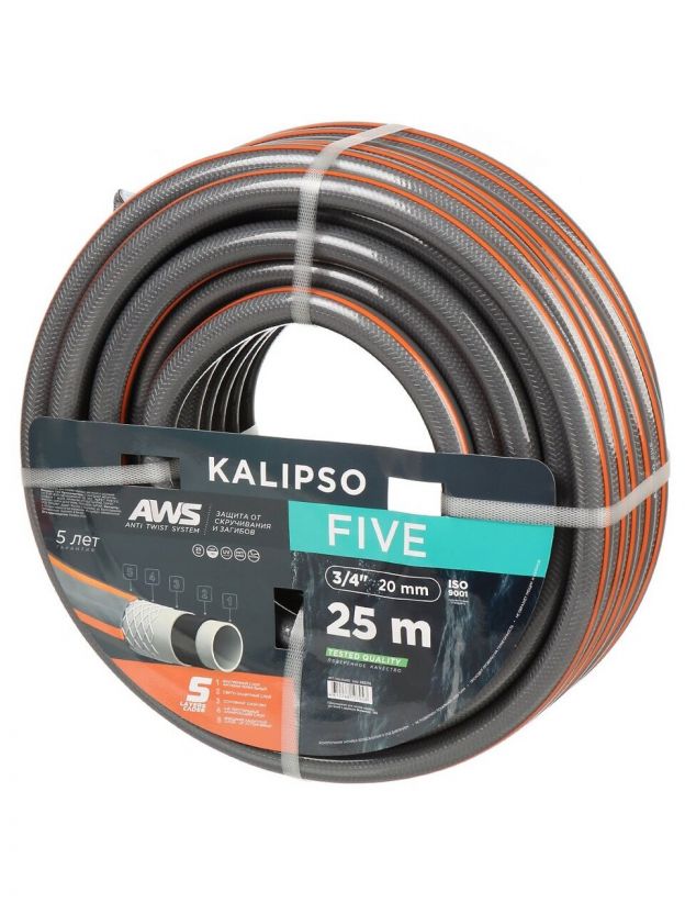 Шланг поливочный, 3/4 '', внутренний d20 мм, 21 атм, армированный, 25 м, 5 слоев, Kalipso, Five, ПВХ, антиторсионный, всесезонный, AGL263425