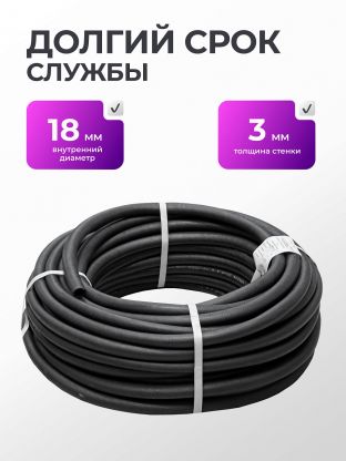 - Оптимальный диаметр 18 мм и толщина стенки 3 мм из цельной резины — выдерживает давление до 4 атмосфер и рассчитан на долгий срок службы;