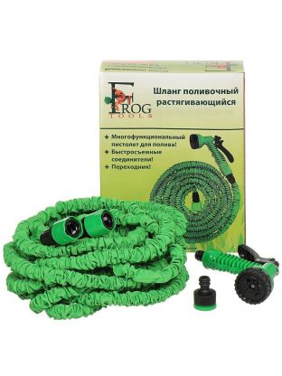 Шланг поливочный, растягивающийся, 6 атм, 5 м, Frog Tools, латекс, с пистолетом, 0330107PP/0330107С