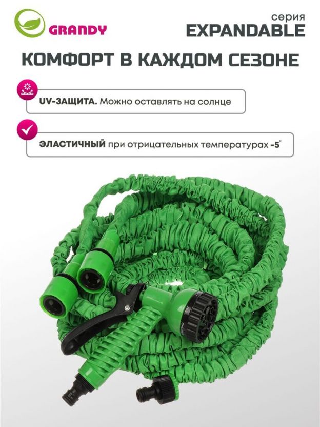 Шланг поливочный, растягивающийся, Grandy, Expandable, латекс, от 10 до 30 м, с пистолетом, BT003