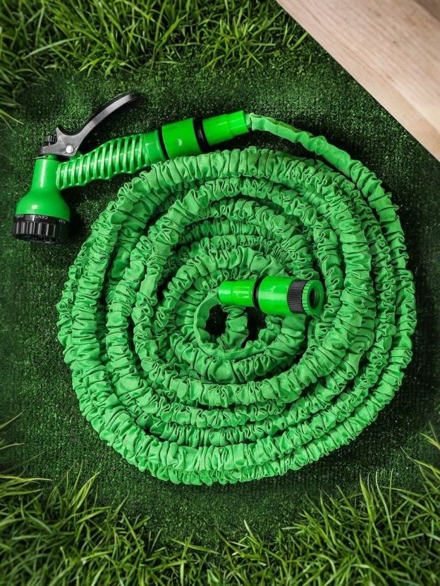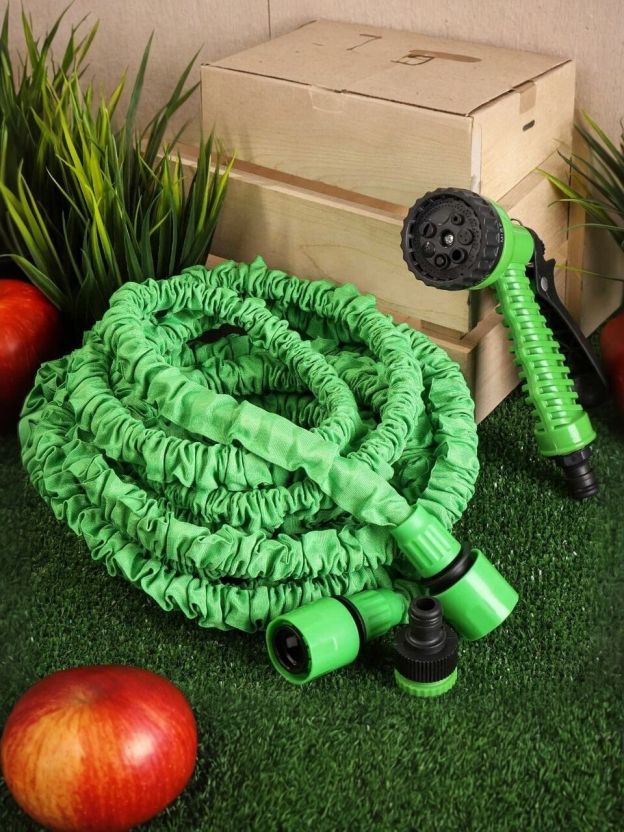 После окончания поливочных работ стрейч-шланг сжимается и приобретает свой первоначальный вид и размер.